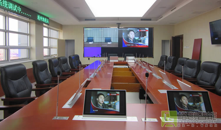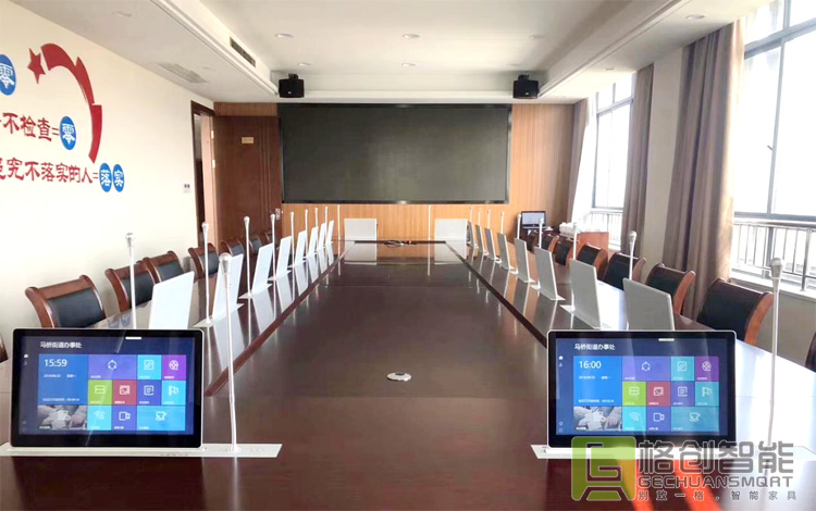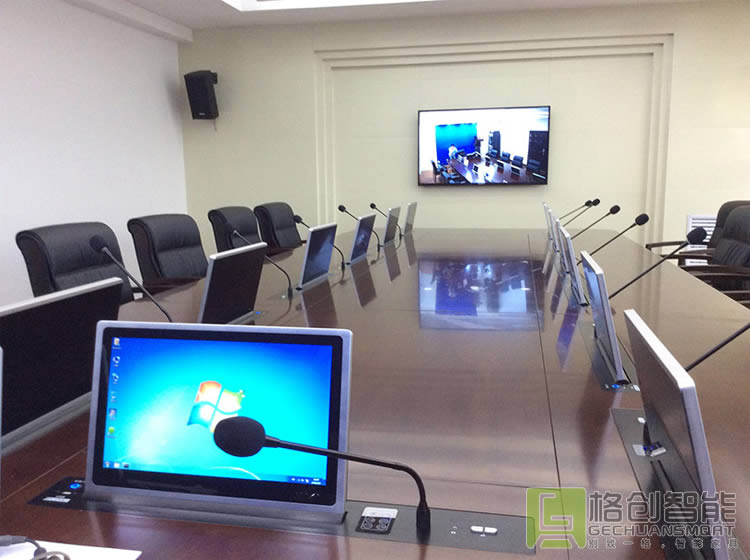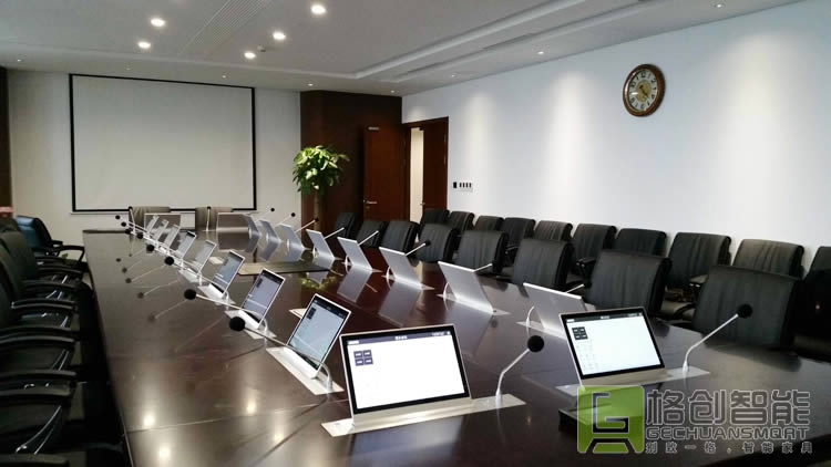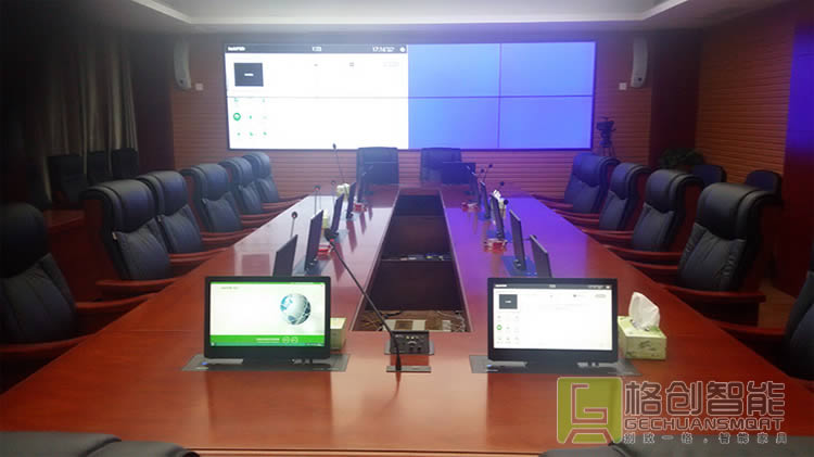 為了滿足高密度的會議需求,傳統會議模式的升級改造,是通州地稅局提升內部效率的首要任務。在深入調研和了解市場多種智能會議室方案的優劣勢后,結合自身實際需求,最終決定采用格創智能研發的自動升降的無紙化會議系統解決方案
