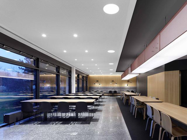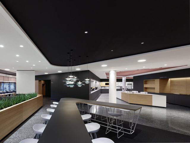 身處這座大廳,人們可以從多個視角觀察兩個樓層的大致功能:周邊是培訓(xùn)和管理區(qū)域、一處展示空間,一樓還能通向餐廳區(qū)域。培訓(xùn)中心的餐廳也重新改造,規(guī)劃為豐富多元的特色空間,提升了空間的應(yīng)用效率。