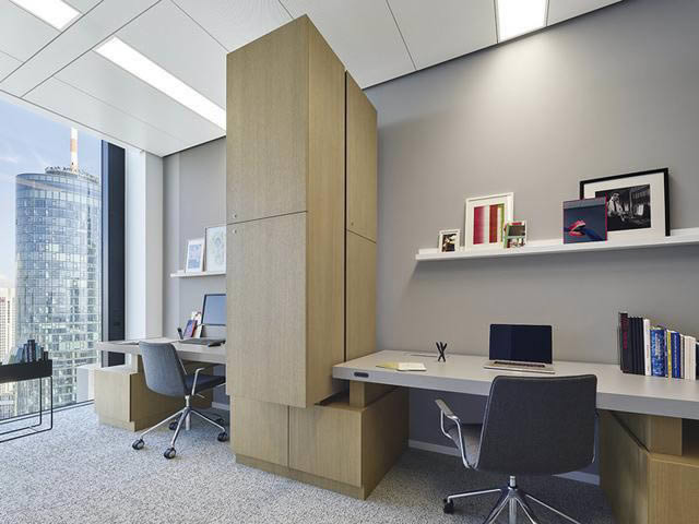 除了四個開放的工作區,還提供了個性化的私人儲物柜,單人、雙人和拐角的辦公室。工作區配置升降辦公桌,個人辦公室則是集成會議功能的辦公桌,便于自由而親密的私人交談。
