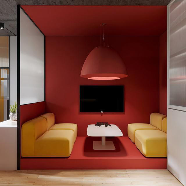 線與面的構成也是本案塑造精致空間的要素。簡約的色塊和線性構成有著蒙德里安幾何抽象繪畫的神韻。渾圓舒適的軟體辦公座椅與細膩的線性構成形成強烈的對比。對空間的理解、對潮流元素的掌控,最終呈現出一個綻放著藝術氣息的精致辦公空間。