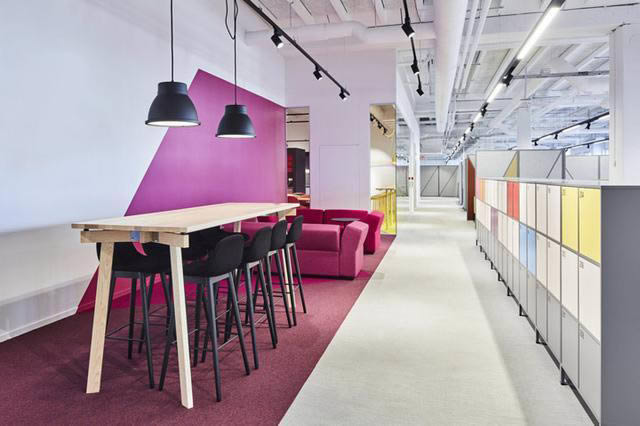 設(shè)計任務(wù)最終包括公司的戰(zhàn)略性和創(chuàng)新工作模式,并通過物理空間去詮釋公司的核心價值觀。IT開發(fā)團(tuán)隊的定制空間區(qū)域提供多樣化的工作選擇,同時定制的高隔屏沒有影響開放的空間和美感。