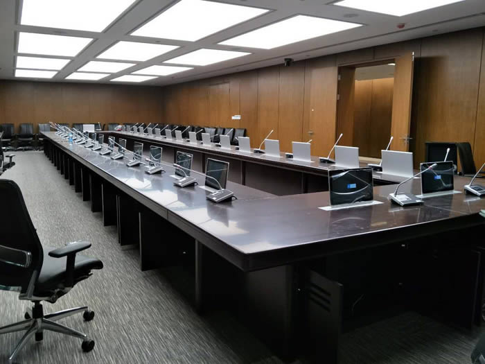 許多的會議室設計都非常奢華大氣,而在眾多裝修風格中,歐式古典風格可謂是奢華、高檔次的裝修的象征,它的家具樣式也是眾多風格中最為優質的材料制成的。辦公家具檔次的選擇也體現出了這個智能會議室的檔次。圖上這款歐式古典風格的多功能會議桌可謂是 極盡奢華氣質,款式大方得體。